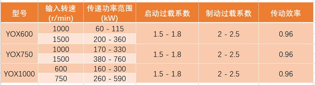 選擇限矩型液力耦合器,首要任務(wù)是匹配動(dòng)力源的輸入轉(zhuǎn)速與傳遞功率。下表匯總了您關(guān)注的三個(gè)型號(hào)在特定轉(zhuǎn)速下的關(guān)鍵性能數(shù)據(jù):